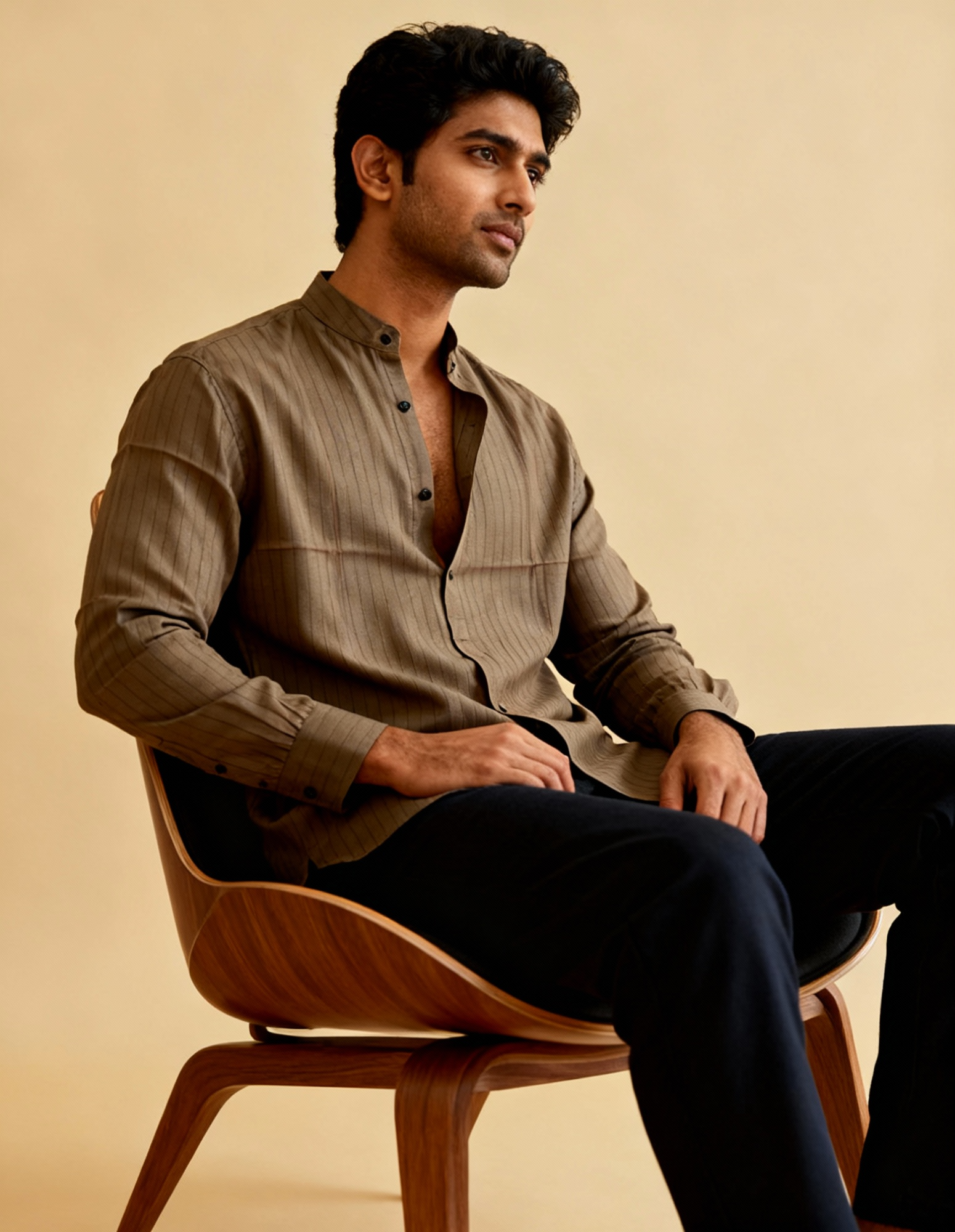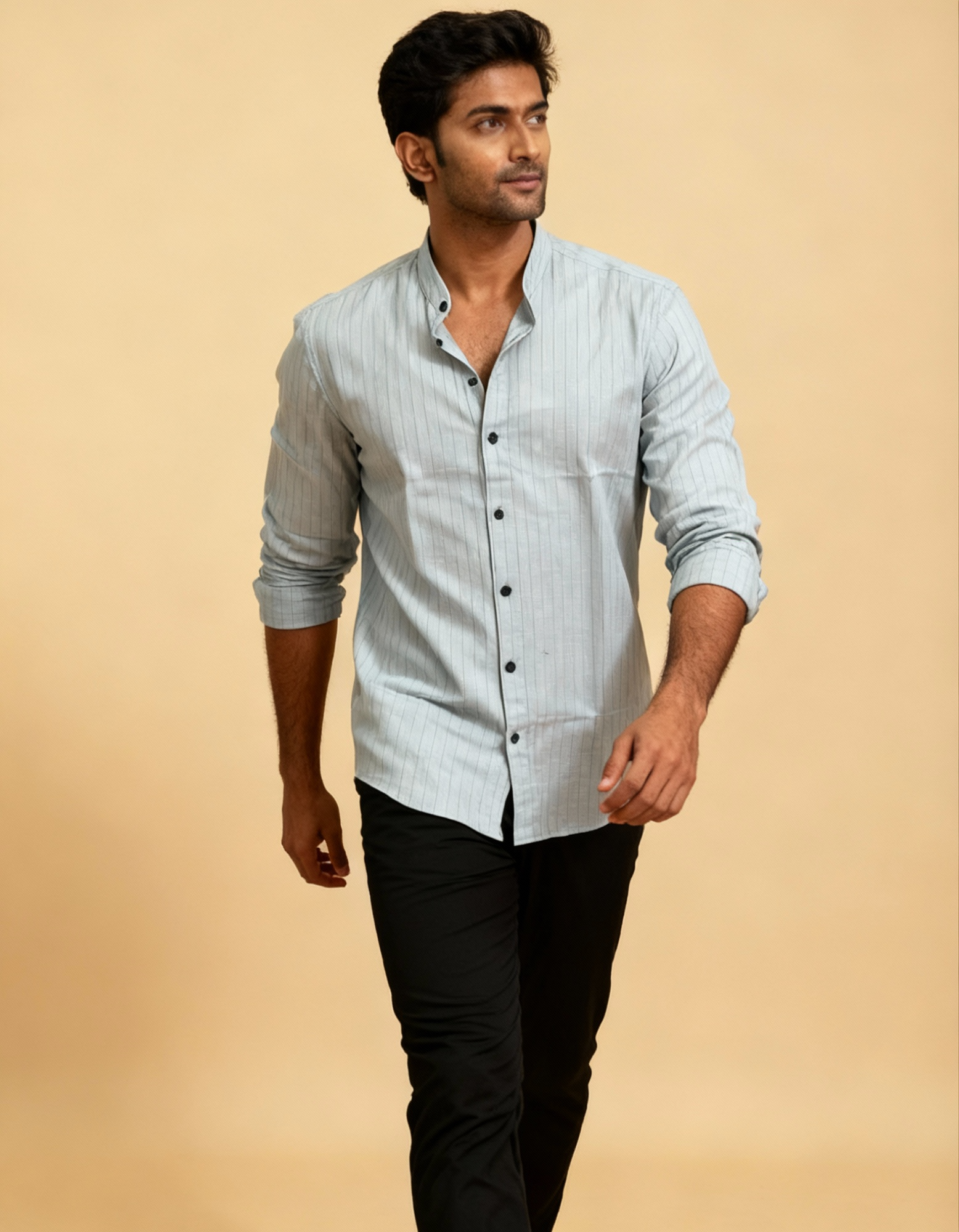 Be the first to review “COTTON LENIN STRIPES CHINESE COLLAR SHIRT” Cancel reply