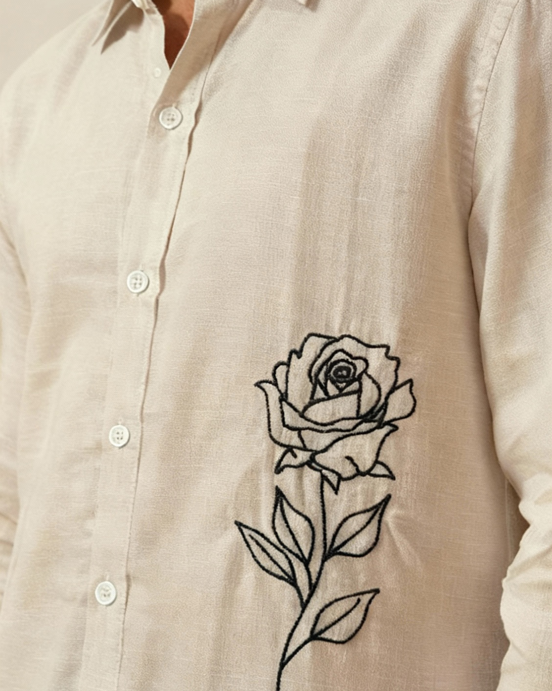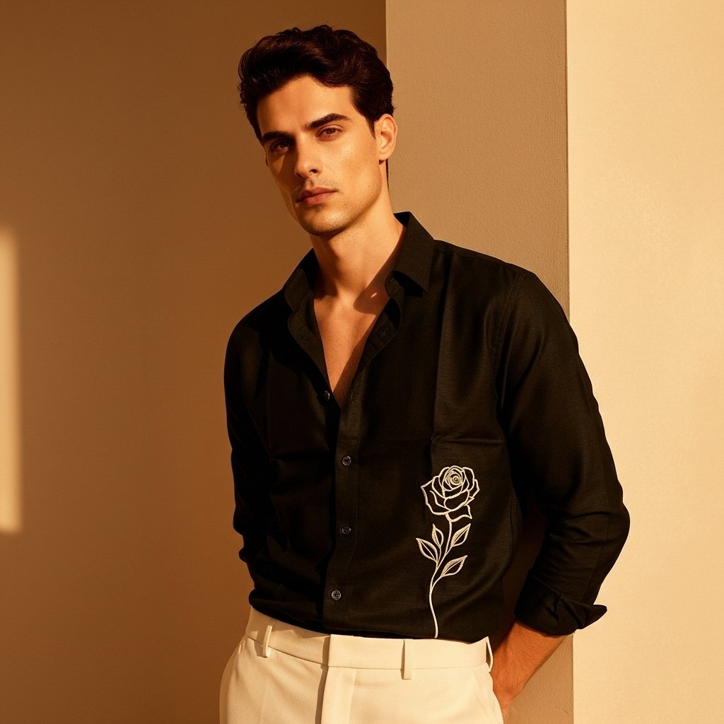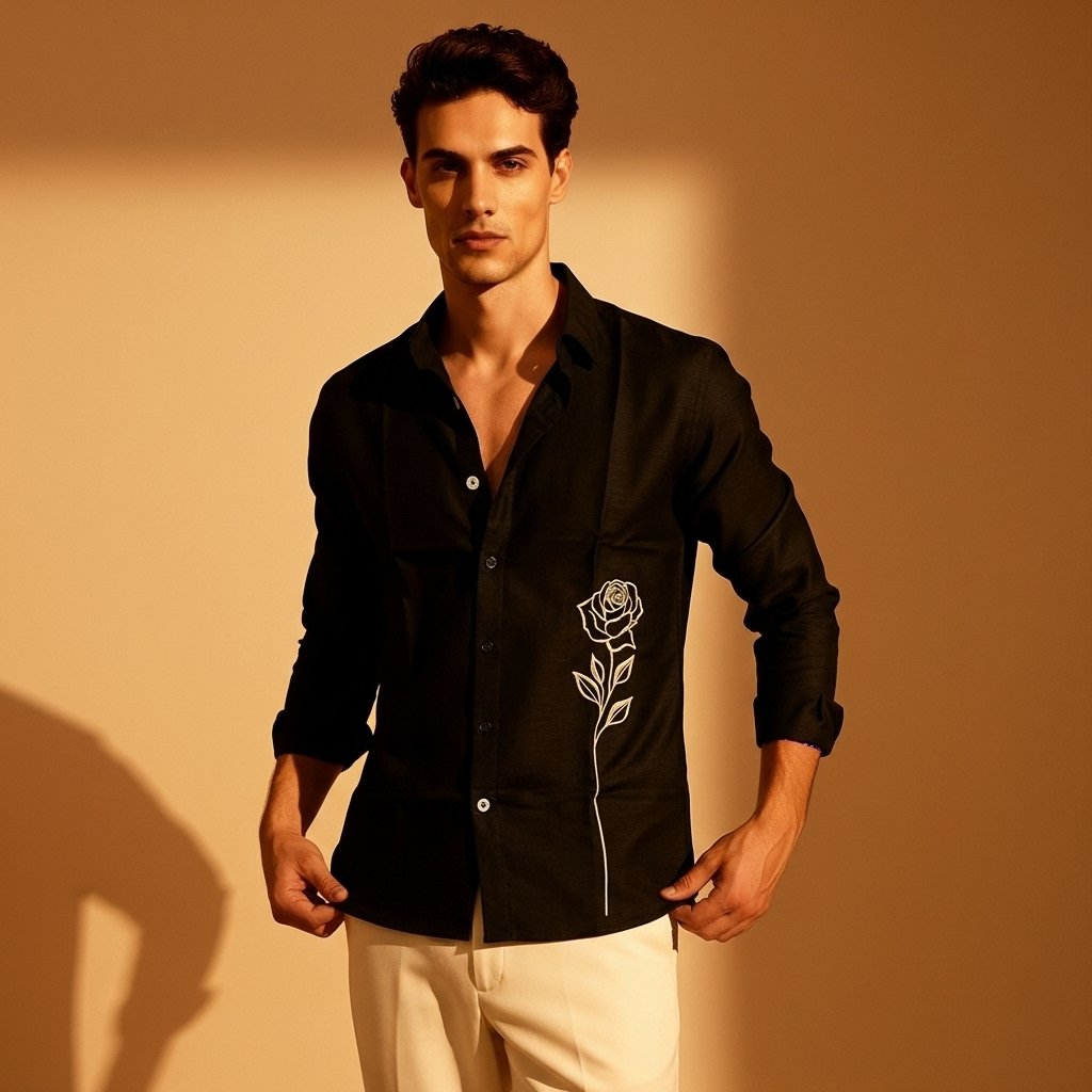 Luxury Lenin with Rose embroidery Men’s shirt