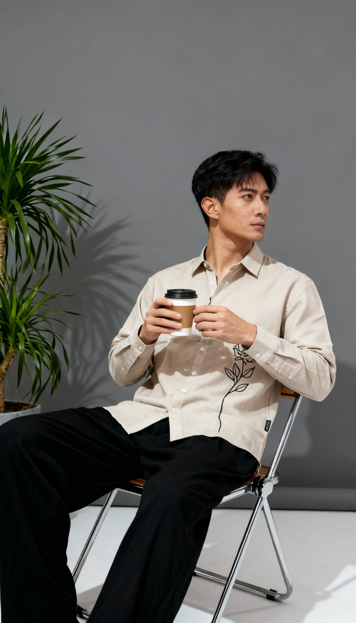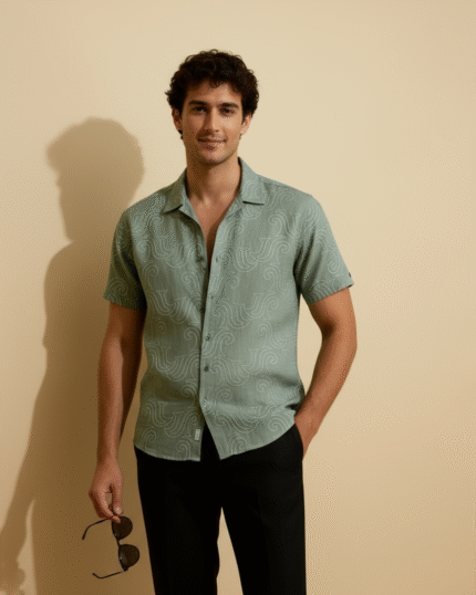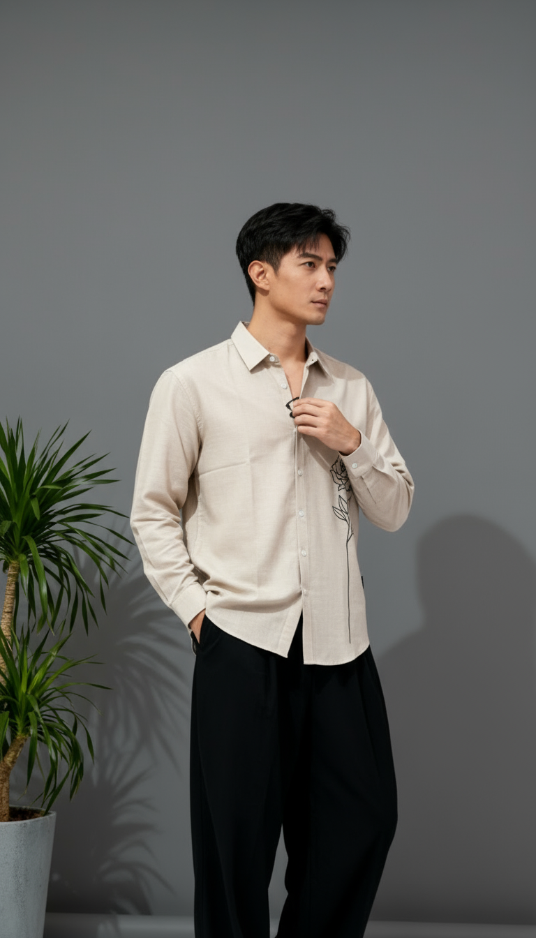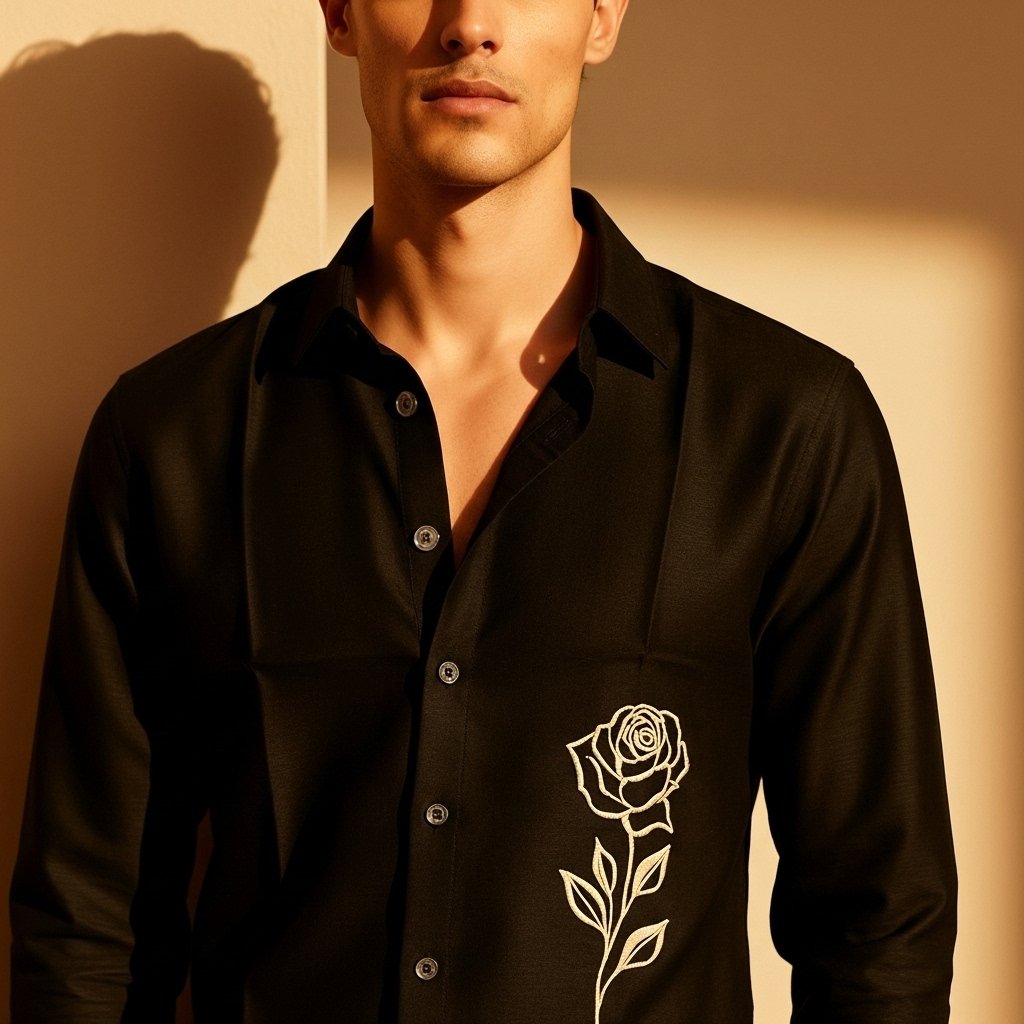 Luxury Lenin with Rose embroidery Men’s shirt